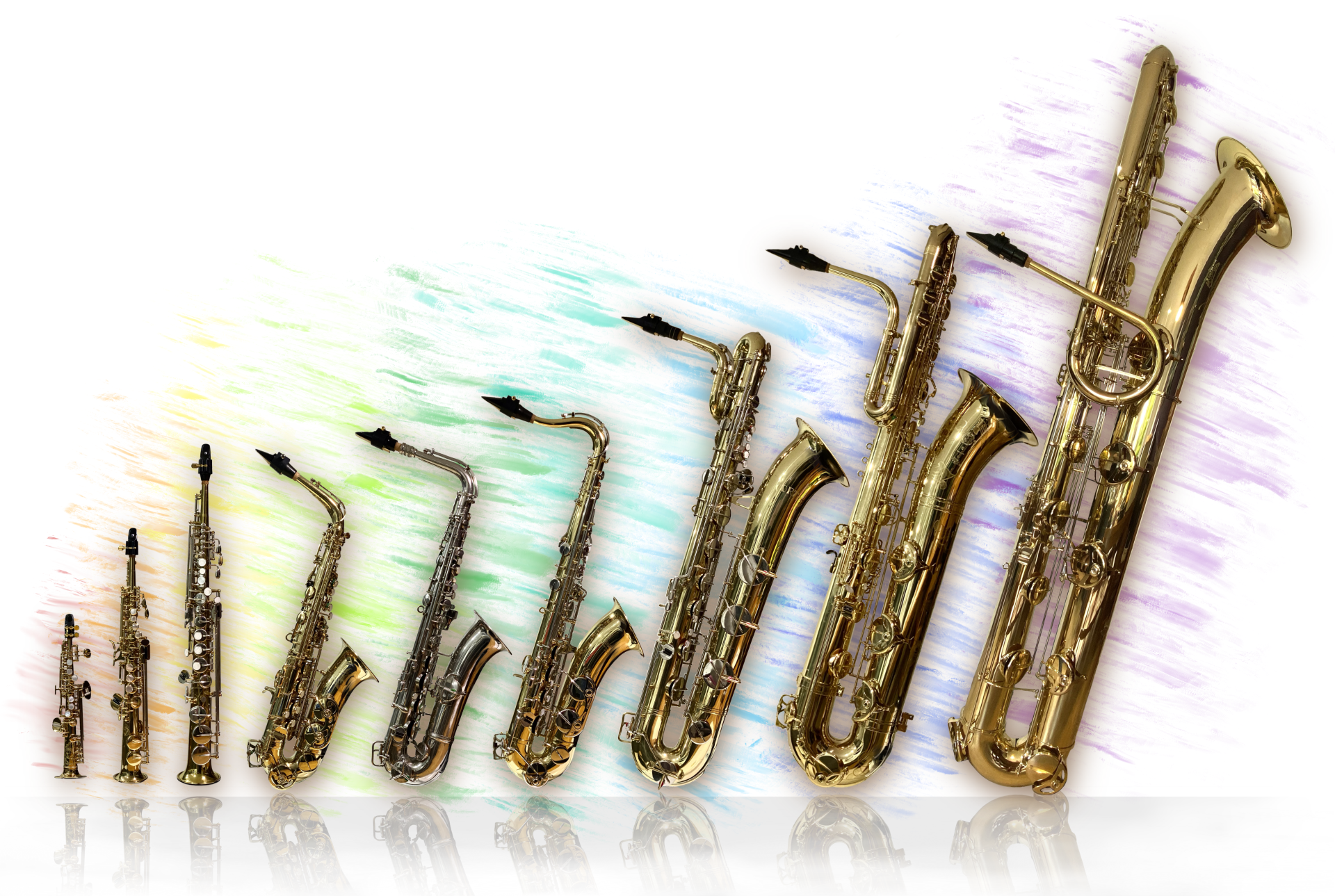 Although a relatively modern instrument, saxophones have been through some highs and lows over the years. Luckily we live in a time when interest in the full range of saxes is higher than ever and Whittlesey Sax Choir is fortunate to regularly feature everything from sopranino to bass. We sometimes manage the real extremes too: soprillo, and contrabass. Below you can see and read a bit about the various saxophones we use. You can also read about how the first saxophones were created in Saxophone: an Origin Story.